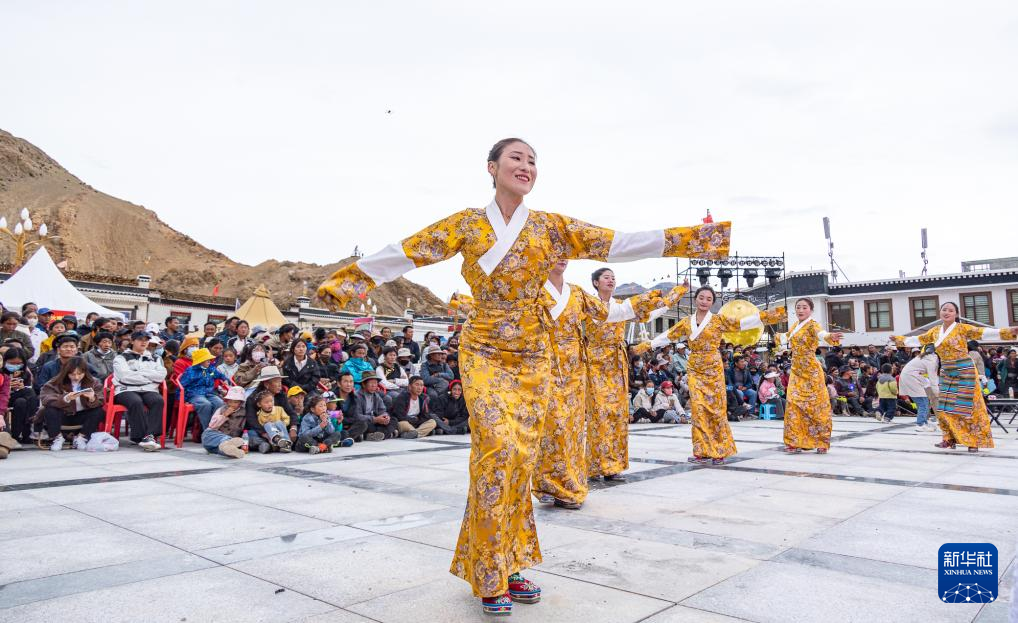 藏族演員表演鍋莊。 新華社記者 丁增尼達 攝