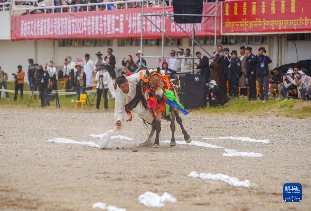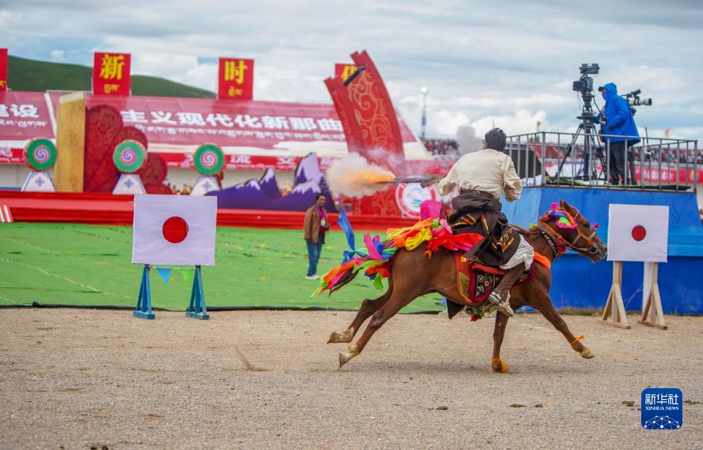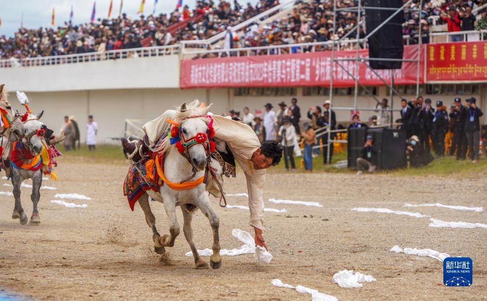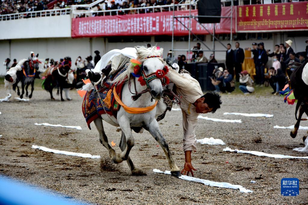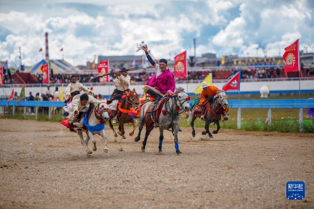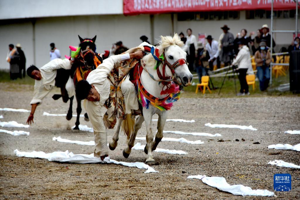 8月10日,騎手進行馬術表演。新華社發(旦增努布攝)
