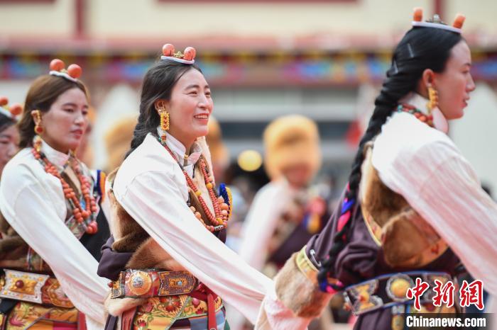 圖為昌都市民間鍋莊舞比賽現(xiàn)場(chǎng)。貢嘎來松 攝
