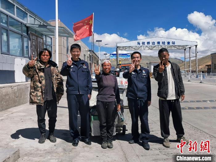 圖為馬攸橋邊境檢查站民警與徒步旅行團(tuán)隊合影留念。申孟勇 攝