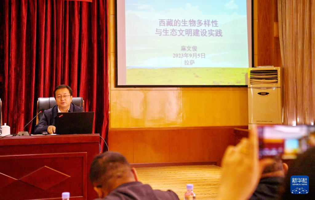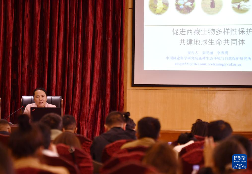 9月5日,中國林業科學研究院副研究員秦愛麗為與會人員作生物多樣性保護知識講座。新華社記者 張汝鋒 攝