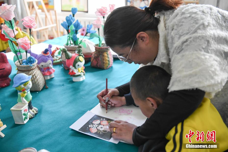 圖為那曲市特殊教育學校老師教學生畫畫。貢嘎來松 攝