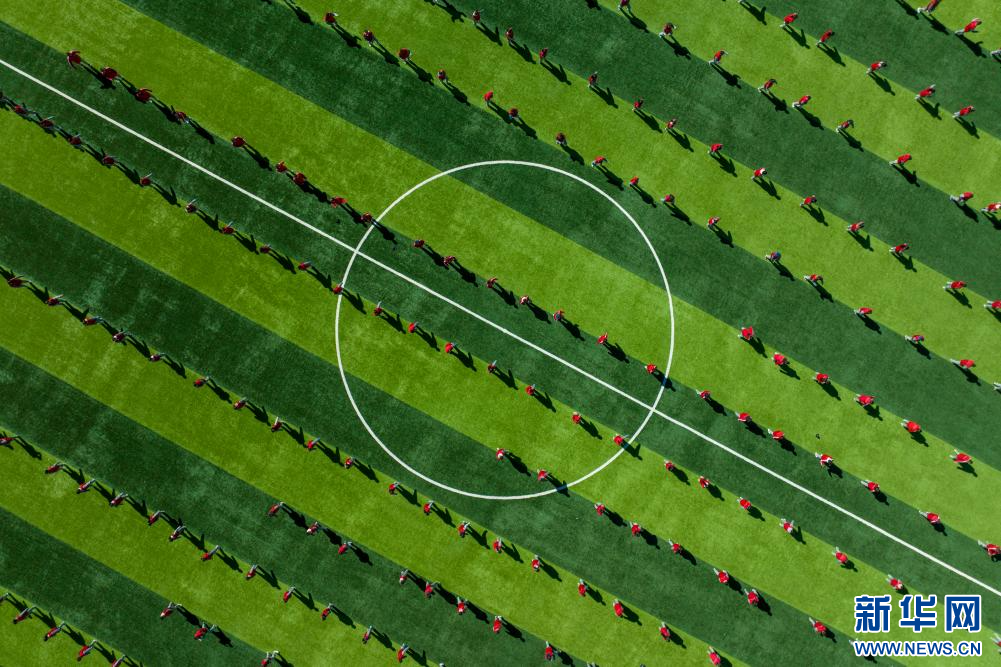 圖為那曲市第三小學學生在做體能訓練(9月5日攝,無人機照片)。新華網 旦增努布 攝