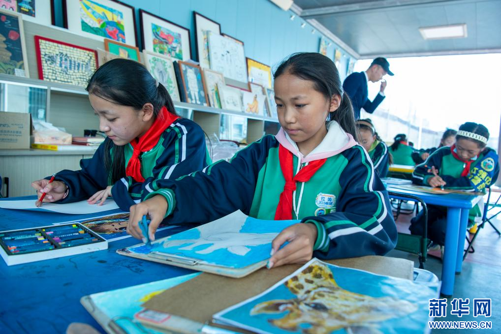 圖為那曲市第二小學學生在學習繪畫(9月5日攝)。新華網 旦增努布 攝