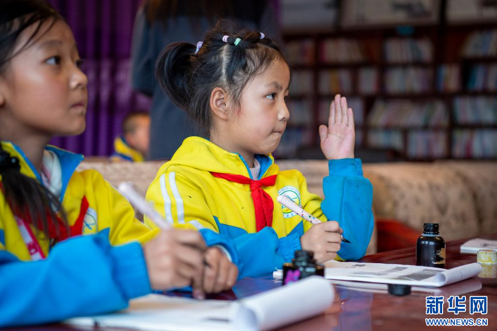 圖為索縣第一小學學生在學習藏文書法(9月7日攝)。新華網 旦增努布 攝