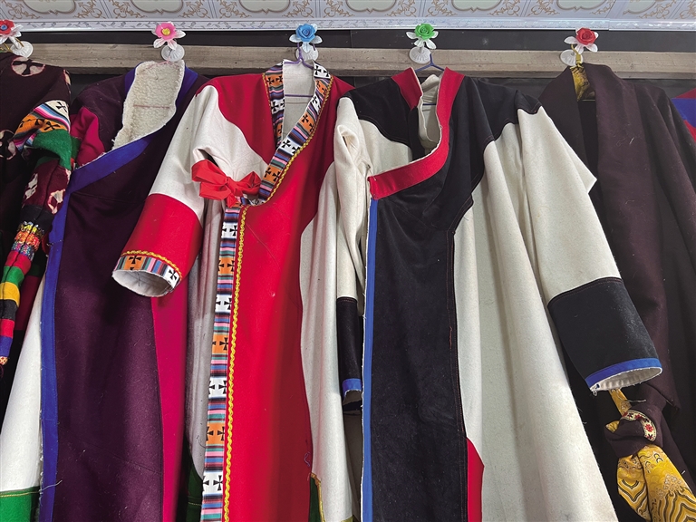 努拉今年66歲,自他曾祖父起,家人就開始從事“森郭服飾”制作,并將這項非遺技藝一代一代傳承了下來。努拉告訴記者:“從父親那一輩開始,由于外來服飾的流入,藏民族傳統服飾的發展就不如從前了,這對‘森郭服飾’的傳承也有很大的影響?!?/p>