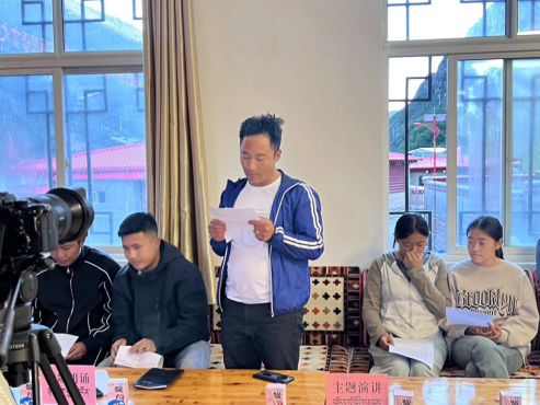 “獲得今天詩歌朗誦、演講比賽、情景模擬一等獎的分別是益西繞吉、拉措、鄧小華,獲得二等獎的分別是益西丁真、益西澤西、江擁羅布……”掌聲、笑聲、歡呼聲回蕩在江達鎮嘎通村村委會會議室里。