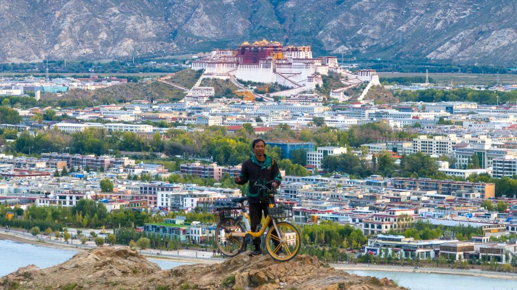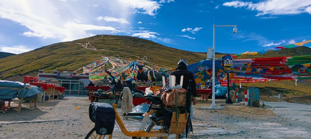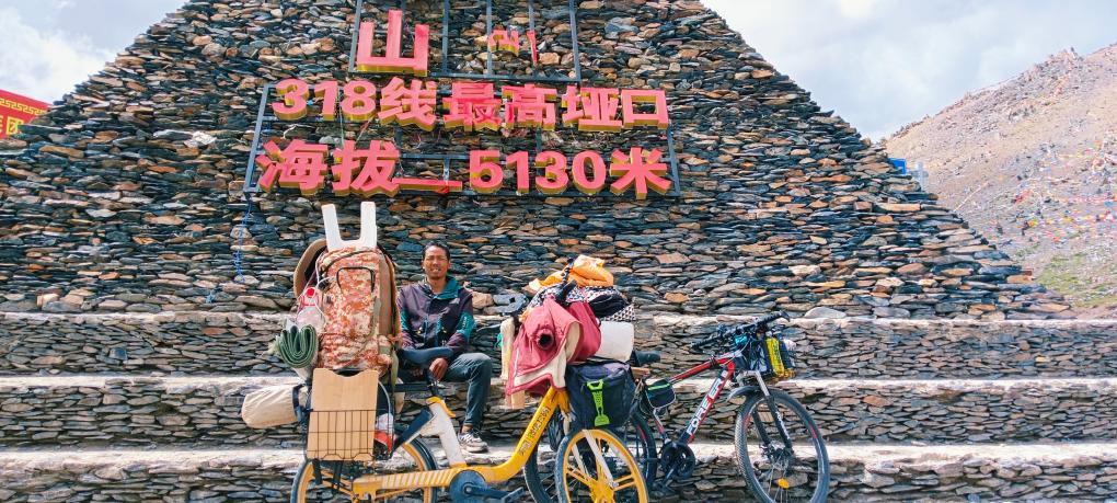 王賢日騎車跨過位于西藏左貢縣境內的東達山埡口