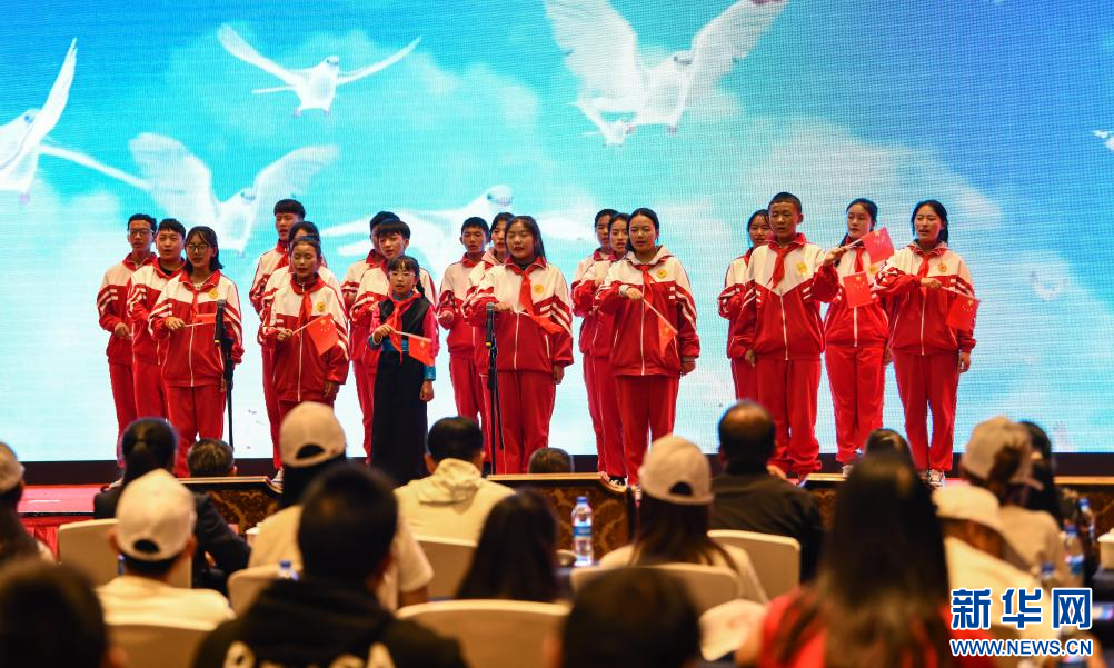 西藏紅色旅游推薦會現場兒童合唱《歌唱祖國》(9月21日攝)。新華社記者 晉美多吉 攝???