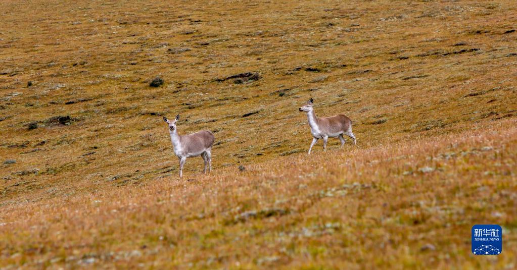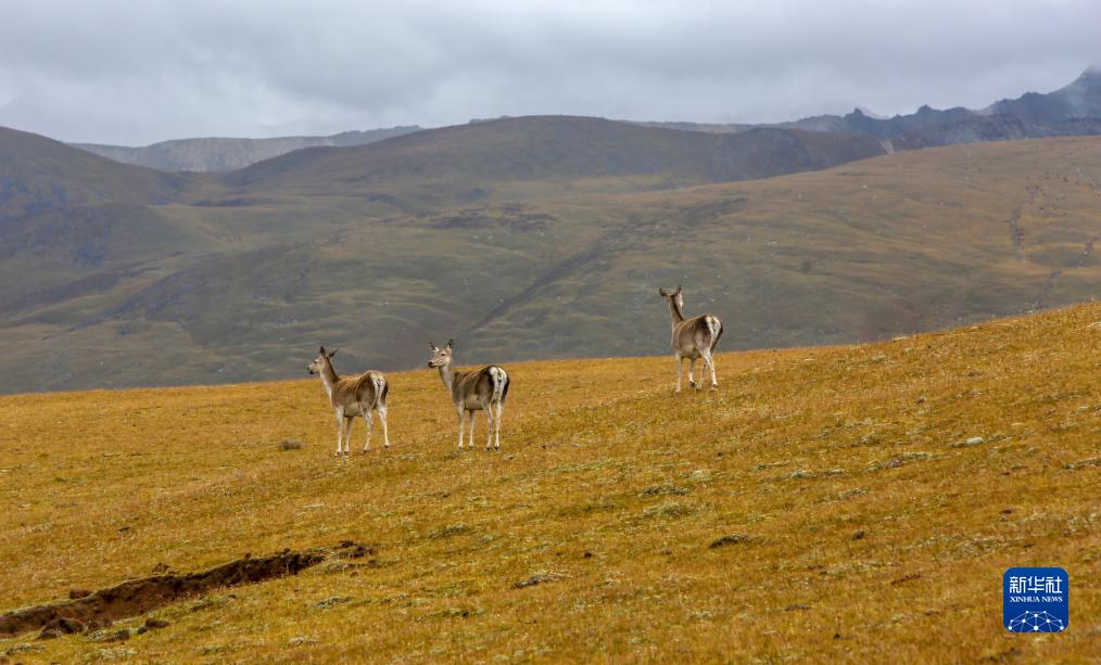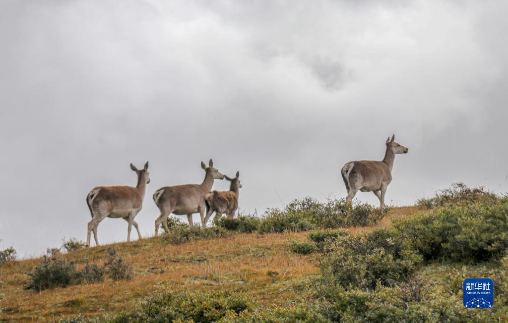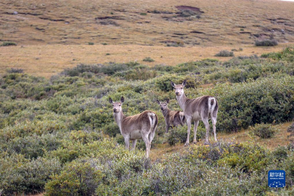 9月24日,幾只西藏馬鹿出現在位于西藏自治區山南市桑日縣的貢德林草原上。新華社記者 邵澤東 攝
