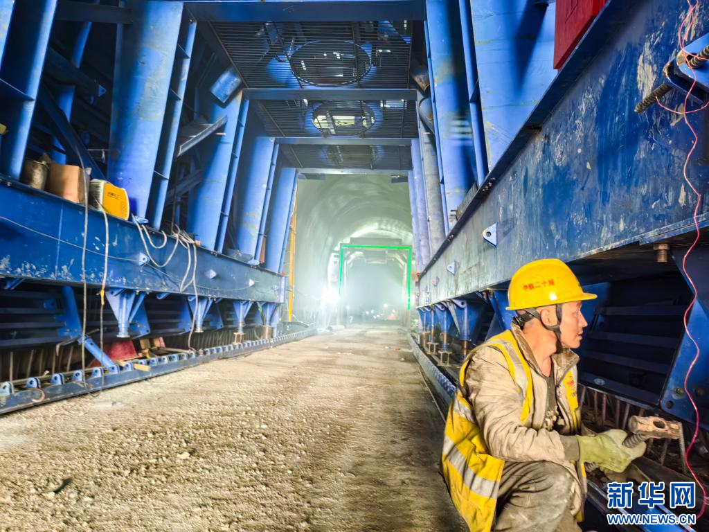 中鐵二十局測量工程師在然烏隧道施工現場進行導線復測作業(受訪者供圖)