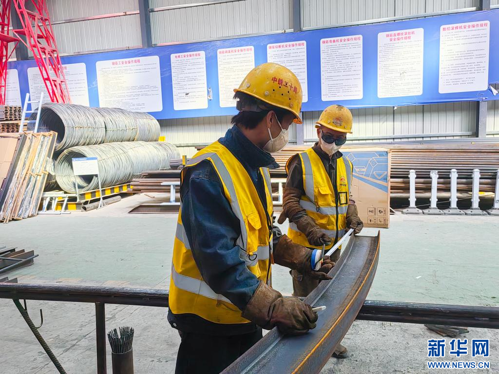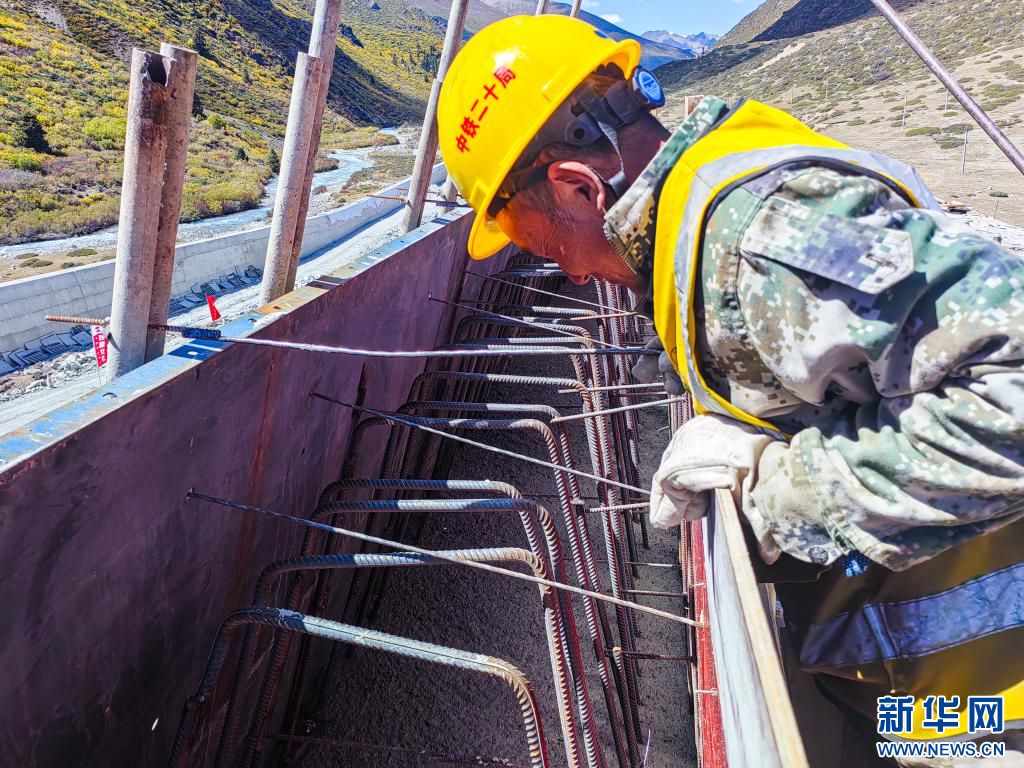 中鐵二十局建設者正在進行然烏隧道鋼拱架加工 (受訪者供圖)