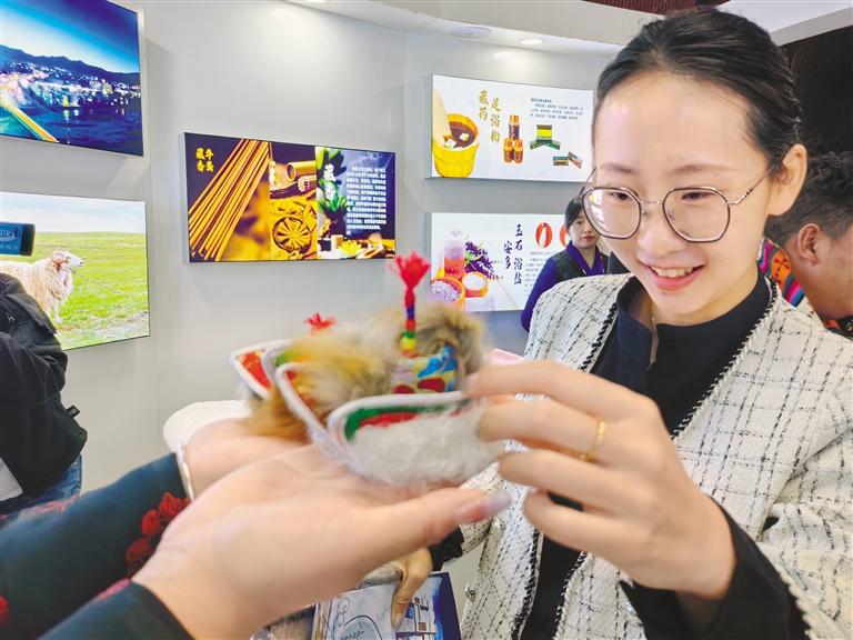 “這次畜產品展銷活動上,我們主要銷售天線帽工藝品、玉石、羊毛圍巾、羊毛毯等,產品價格比較實惠,前來咨詢購買的人也很多。展銷不到兩個小時,就賣了1000多元。”安多縣措那湖文化傳播有限責任公司負責人貢布多吉的臉上充滿了喜悅。