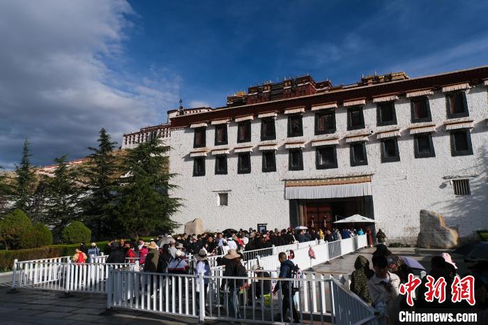 圖為“雙節”期間,游客排隊進入布達拉宮參觀。江飛波 攝