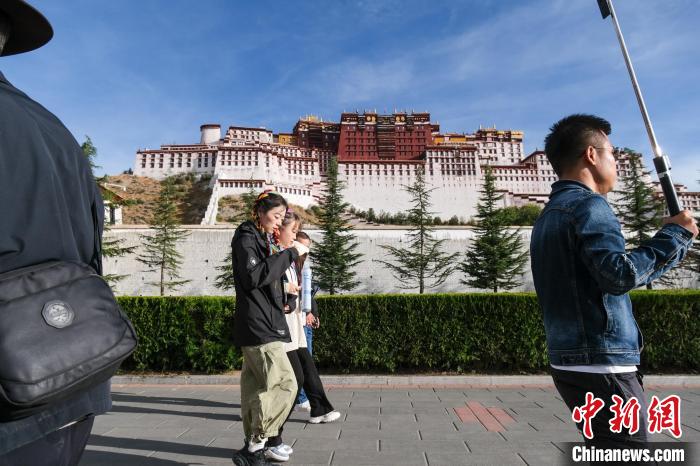 圖為“雙節”期間,游客路過布達拉宮。江飛波 攝
