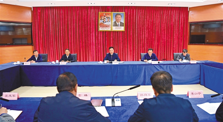 10月7日,自治區黨委書記王君正前往自治區社科院、社科聯調研。這是王君正聽取西藏哲學社會科學工作開展情況匯報。 記者 旦增西旦 攝