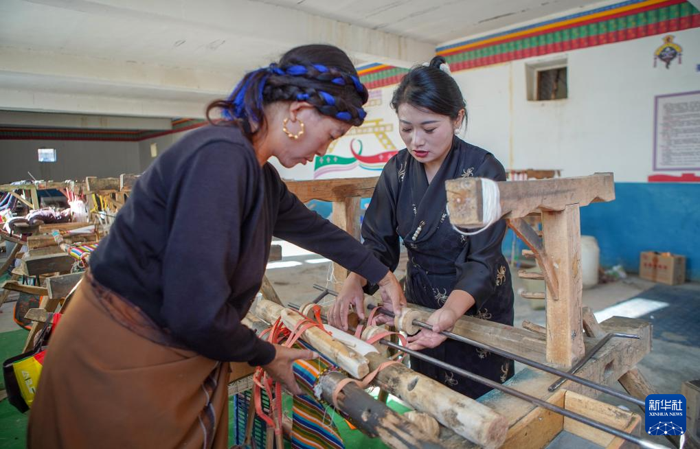 10月9日,旦增卓嘎與合作社工人一起組裝傳統織機。新華社記者邵澤東 攝