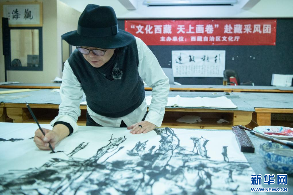 10月16日,畫家張懷偉在創作。新華網 旦增努布 攝