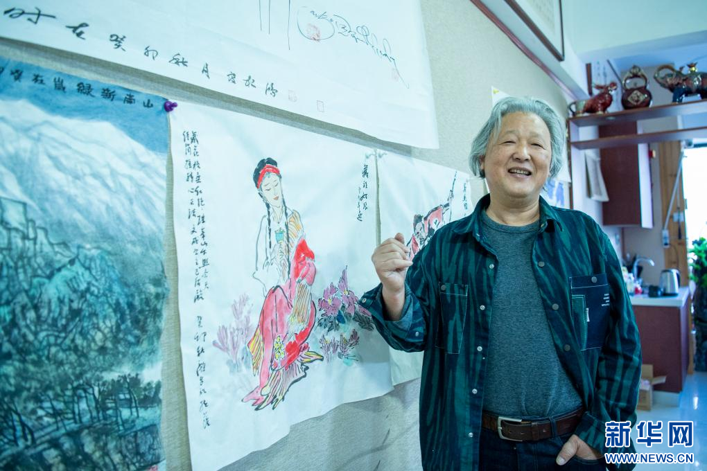 10月16日,畫家顧平在講述創作靈感。新華網 旦增努布 攝