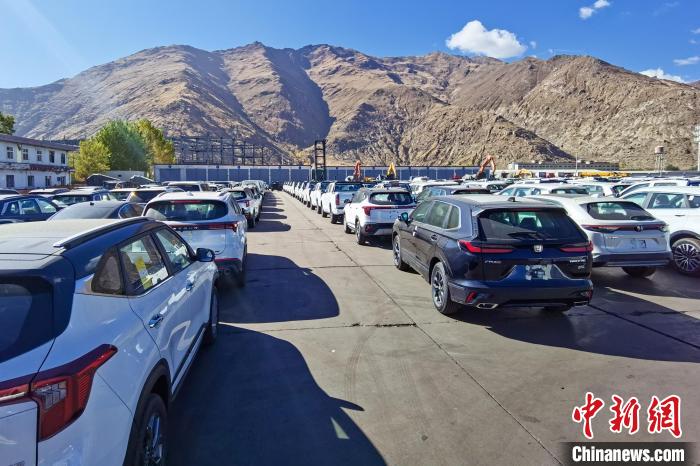 10月27日,青藏鐵路拉薩車務段拉薩西站貨場,遠遠望去停滿了嶄新的汽車,工作人員正在加緊卸車裝運。今年以來,拉薩西站貨場累計發運商品汽車2920輛292車,到達商品汽車3.1萬輛3100車,預計全年將發運6850輛685車,到達3.68萬輛3600余車。