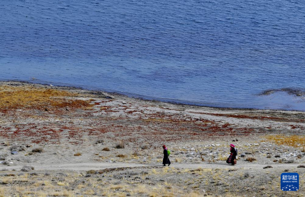 瑪旁雍錯湖畔的轉湖人(10月29日攝)。新華社記者 張汝鋒 攝