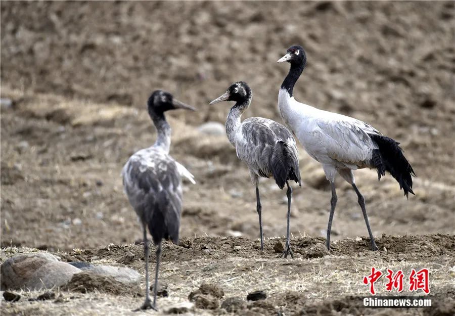 國家一級(jí)重點(diǎn)保護(hù)野生動(dòng)物黑頸鶴在西藏拉薩楚布溝的農(nóng)田覓食。李林 攝