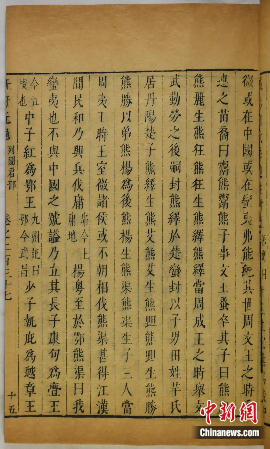 國家民委主辦的“鑄牢中華民族共同體意識文物古籍展”正在民族文化宮展出。圖為展出的宋代《冊府元龜》,其中記載了楚國在西周時期還曾自詡“我蠻夷也,不與中國之號謚”,但幾代人之后的楚莊王則位列春秋五霸之一,成為華夏文化的代表人物。民族文化宮供圖