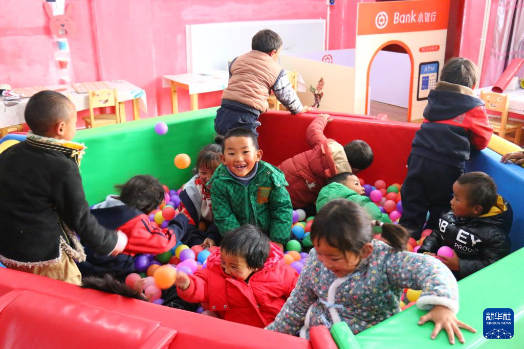 噶爾縣扎西崗鄉幼兒園的孩子們在做游戲(11月6日攝)。新華社記者 陳尚才 攝