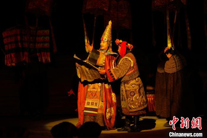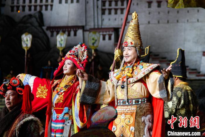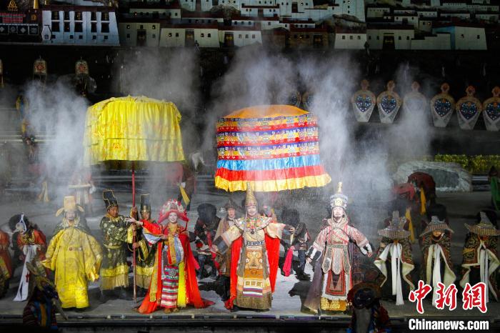 圖為《文成公主》藏文化大型史詩劇演出現場。貢確 攝
