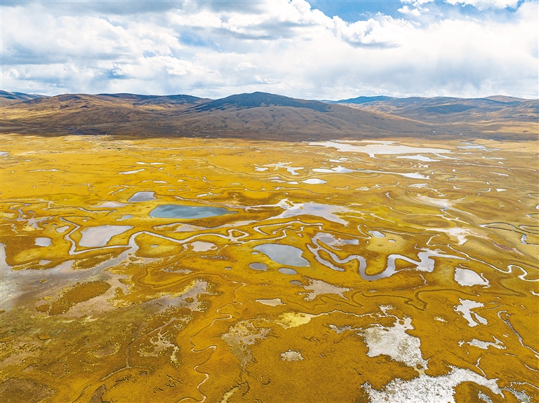 位于昌都市貢覺縣的拉妥濕地(無人機(jī)拍攝)。新華社記者 孫非 攝