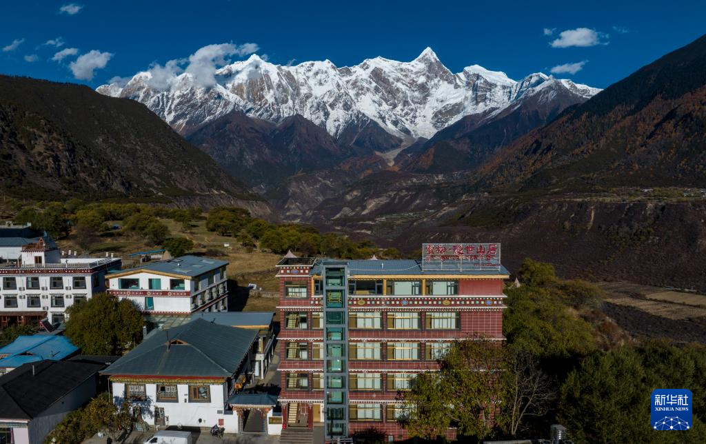 這是次仁頓珠和拉巴卓瑪開辦的民宿(無人機照片,11月13日攝)。新華社記者 姜帆 攝