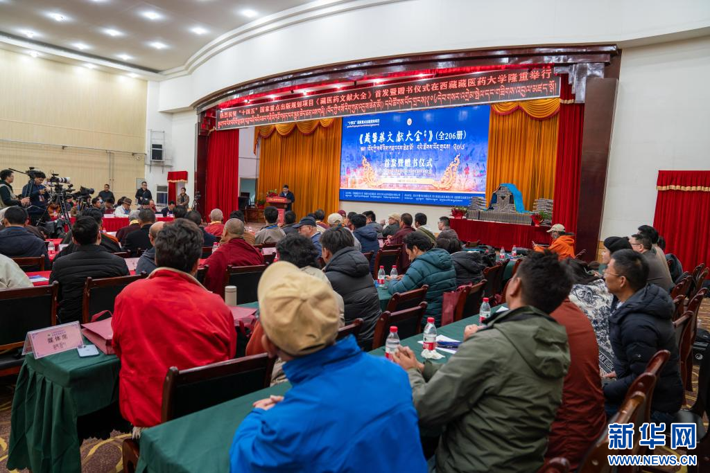 11月16日,“十四五”國(guó)家重點(diǎn)出版規(guī)劃項(xiàng)目《藏醫(yī)藥文獻(xiàn)大全》首發(fā)暨贈(zèng)書儀式現(xiàn)場(chǎng)。新華社記者 旦增尼瑪曲珠 攝