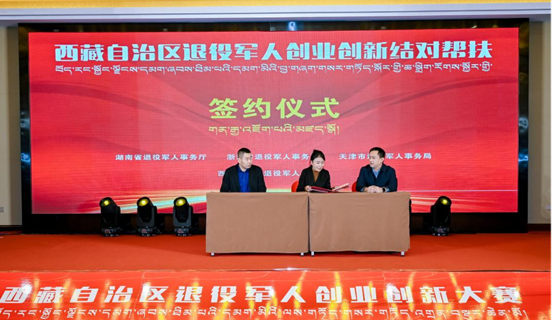為積極用好援藏資源,結對幫扶指導西藏退役軍人市場創辦主體,比賽開始前舉行了退役軍人創業創新結對幫扶簽約儀式。