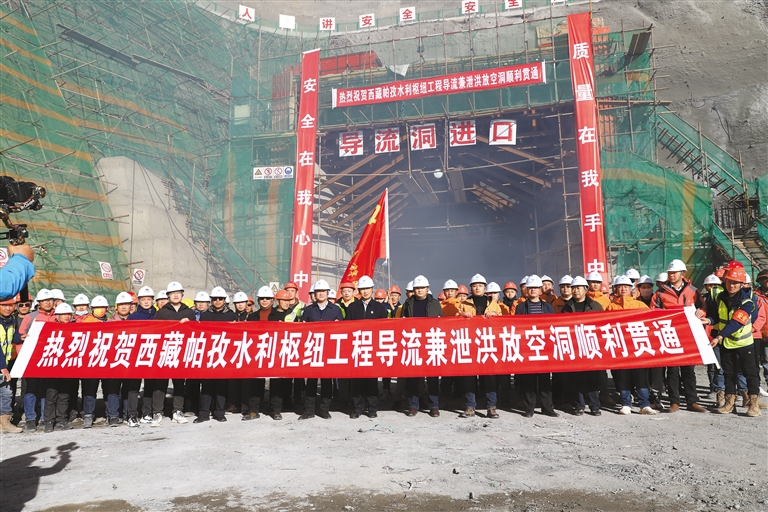 圖為帕孜水利樞紐工程導流兼泄洪放空洞順利貫通現場。記者 李梅英 攝