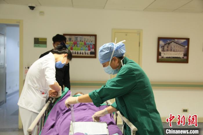 11月21日,藏族女孩澤巴永宗在北京接受脊柱側凸矯形手術前,醫務人員為其核對信息。中新網記者 朱賀 攝