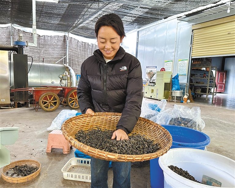 圖為格當鄉尼日卡林下資源合作社工作人員在篩檢木耳。記者 王敏 通訊員 郎玲 攝