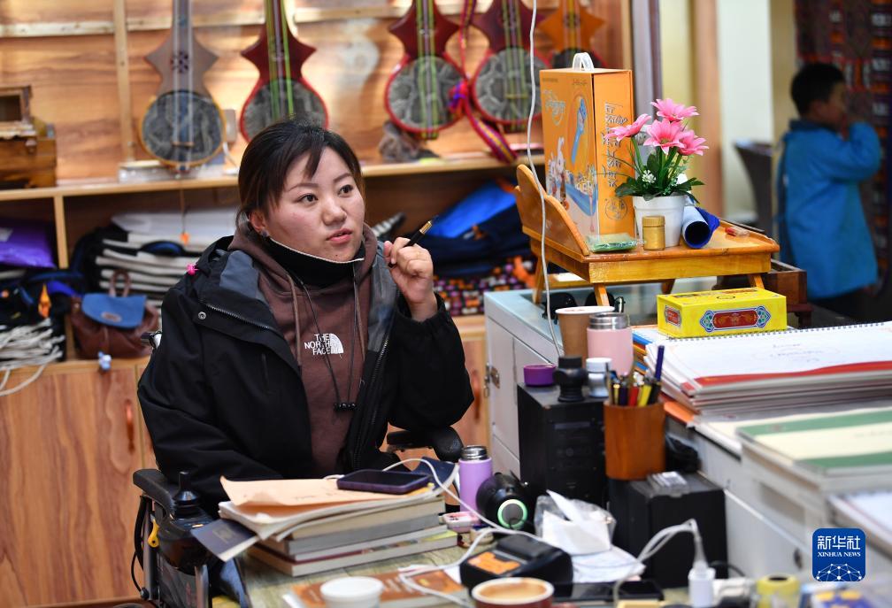 29歲的拉薩姑娘卓嘎因小兒麻痹落下殘疾,她在覺列的公司里學習了藏文書法,還成為拉薩八廓商城一個藏文書法和扎念琴體驗班的負責人,最多的時候要為150名孩子授課。現在她每月稅前收入有大約9000元。