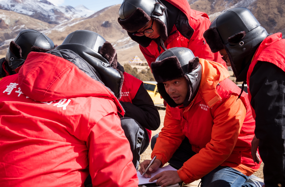 索縣榮布至丁青縣巴達35千伏線路工程負責人黃小洪在現場開展線路弧測量教學。(趙清鵬 攝)