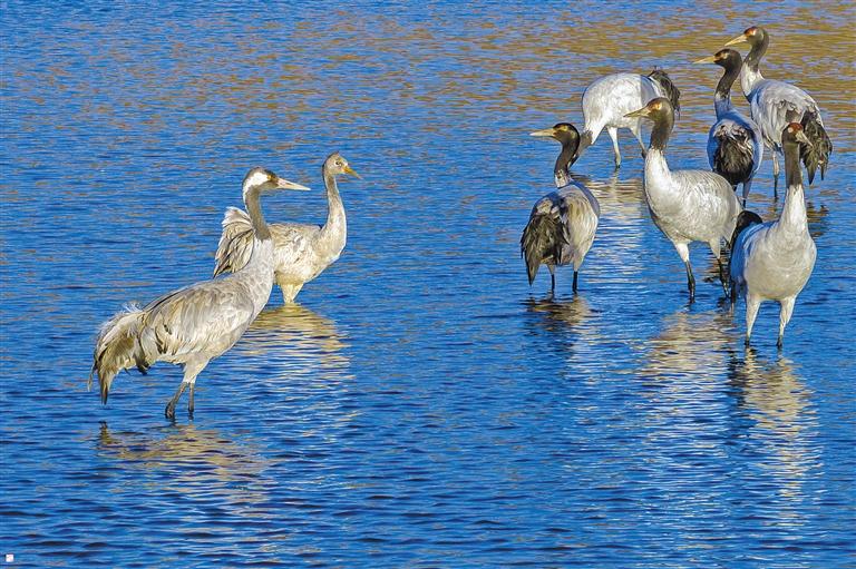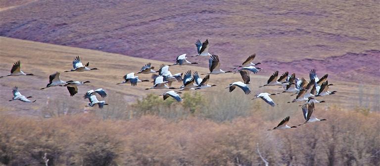 “生態好不好,看鳥就知道?!苯?,在西藏越冬的“老朋友”黑頸鶴越來越多。每年3月中旬,黑頸鶴會從越冬地——雅江中游河谷及其支流拉薩河、年楚河流域的“一江兩河”地區,飛去羌塘北部草原等地繁育后代;10月中下旬又從繁殖地——那曲的班戈縣、申扎縣、嘉黎縣,阿里的日土縣、普蘭縣,日喀則的昂仁縣及拉薩的當雄縣返回到越冬地。黑頸鶴的成群遷徙、停歇或繁殖,正是生態環境持續向好的“最美注腳”。