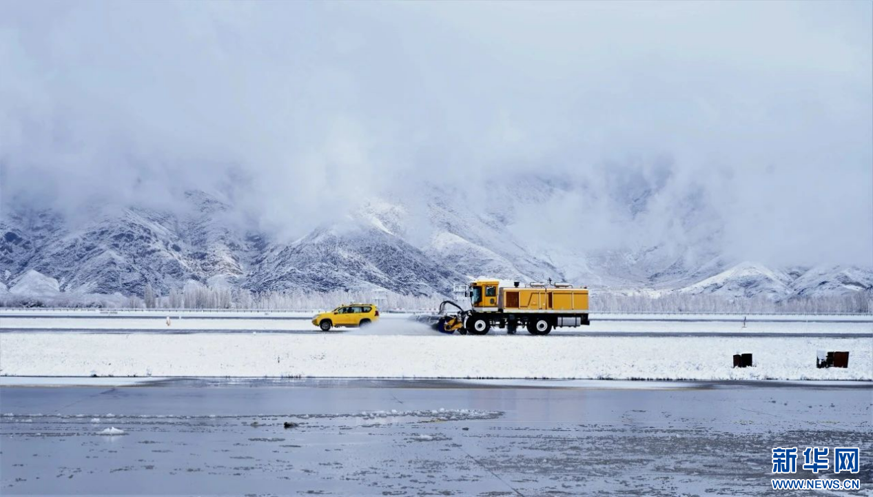 圖為拉薩貢嘎機場機坪除冰雪保障作業。新華網 白瑪群宗 攝