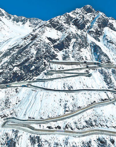 雪后的波墨公路沿嘎隆拉山蜿蜒。馬春林攝(人民視覺)