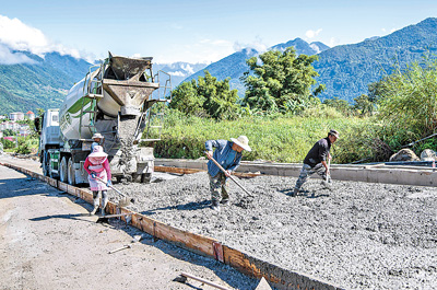 10月13日,工人們在墨脫縣修筑鄉村公路。新華社記者 孫 非攝