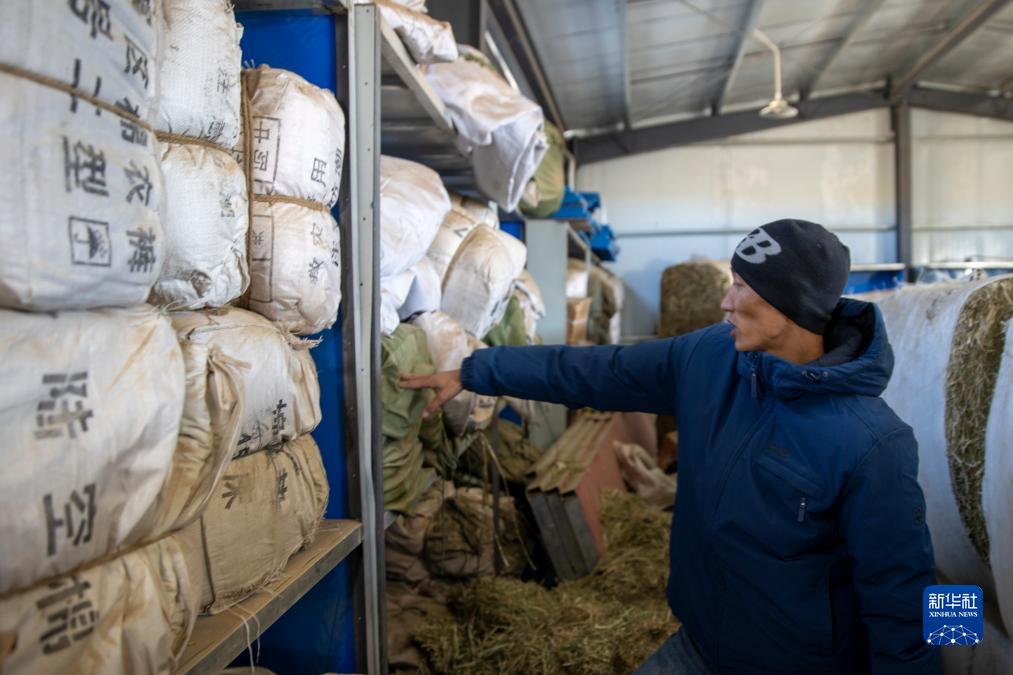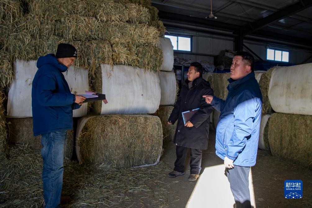 當地干部在俄久鄉農牧業防抗災物資儲備庫里盤點物資庫存。這里草料、爐子、棉服、煤炭、除雪工具等一應俱全(12月18日攝)。新華社記者 姜帆 攝