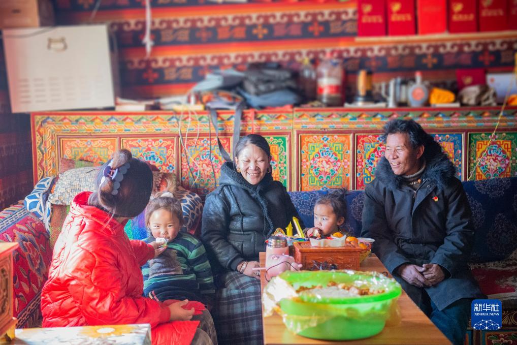 尼瑪縣尼瑪鎮魯根村村民嘎瑪熱杰一家(12月18日攝)。新華社發(旦增努布攝)