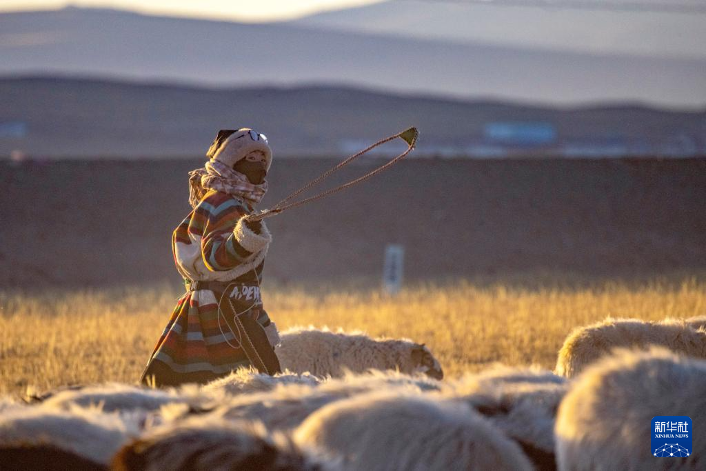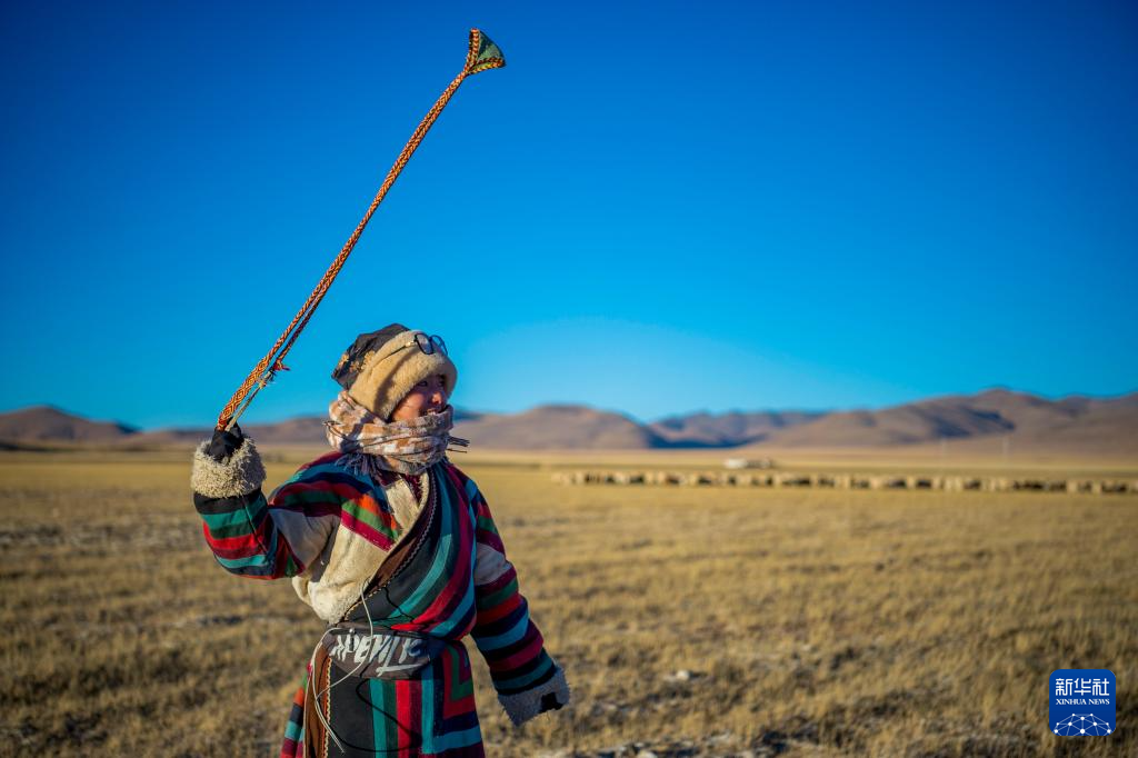 丹增在牧場上放羊(12月18日攝)。新華社發(fā)(旦增努布攝)