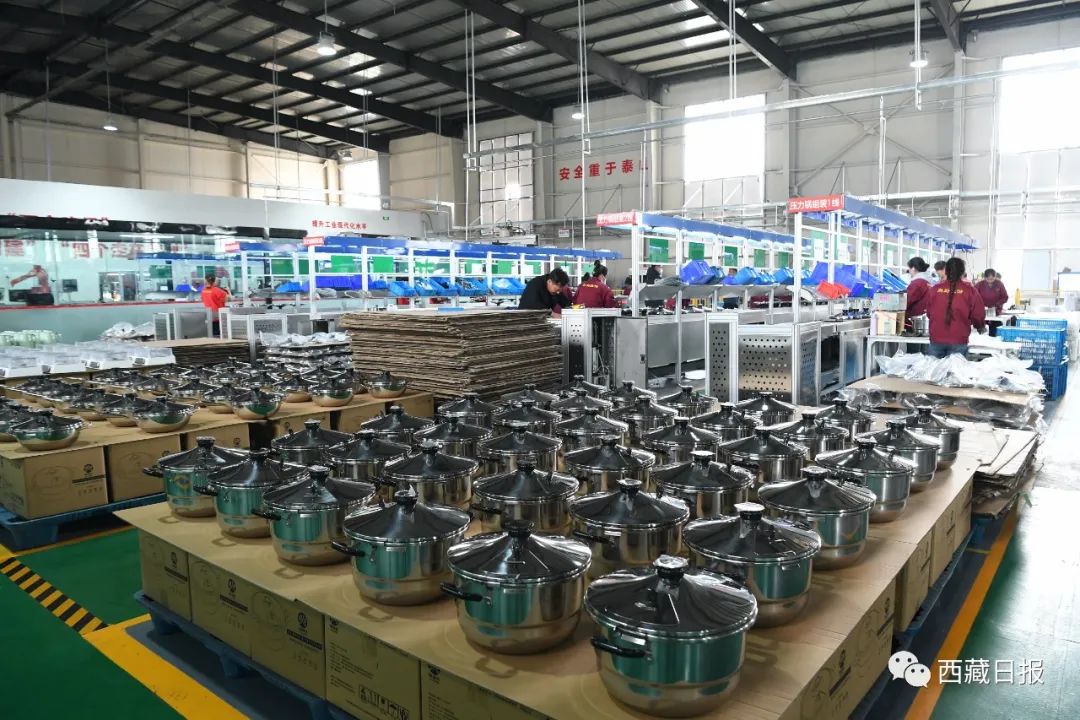 為滿足日漸增長的市場需求,自治區黨委、政府加大招商引資力度,全面優化營商環境,加速推動民生產業做強做優。目前,已引進全球最大的不銹鋼壓力鍋制造商,推動9條生產線落地拉薩實現本地化生產,建立覆蓋7地市的9個直營店,直接招收73名、間接帶動近500名農牧民群眾就業增收。