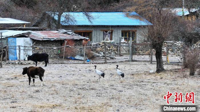 圖為西藏林芝市工布江達縣錯高村里的黑頸鶴。扎頓 攝