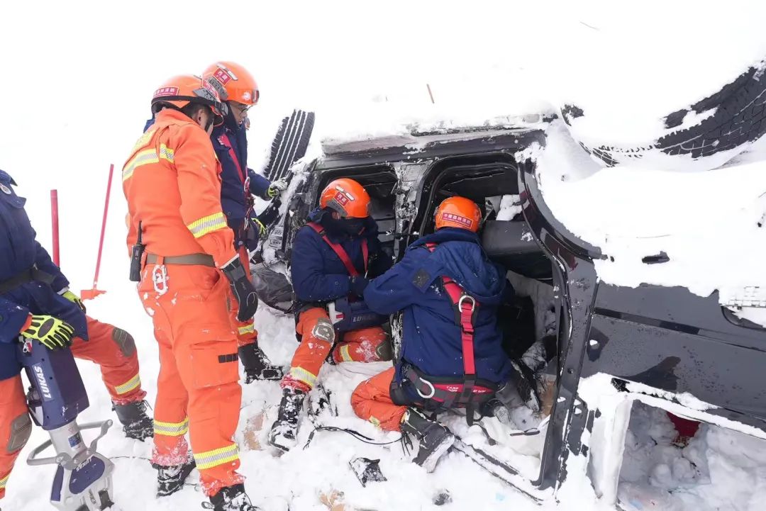 65名隊員到達現(xiàn)場時,天已經(jīng)黑透,周圍大風呼嘯,數(shù)輛受災車輛被直接埋壓在雪下,救援難度很大,很多隊員都心里直打顫。