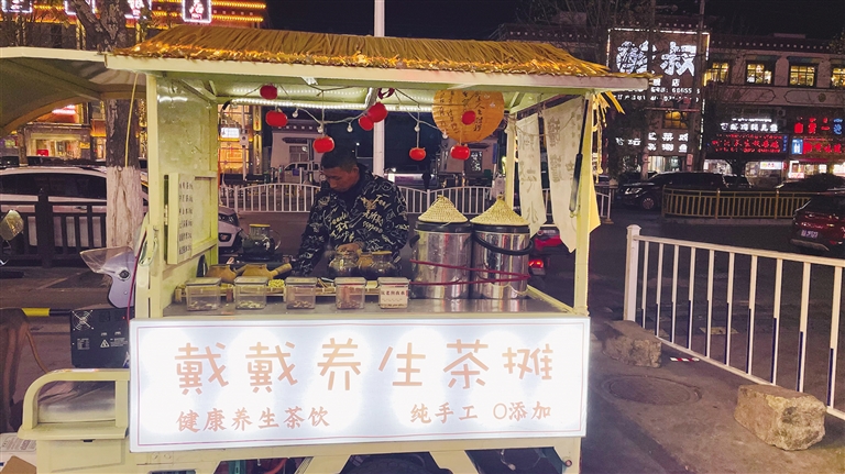 戴新力的攤位推出了玫瑰、桂花、茉莉、黑糖生姜4種口味的奶茶,售價從18元至28元不等。記者看到,玫瑰味的罐罐奶茶,原料除了鮮奶和茶葉,還添加了玫瑰花、紅棗、枸杞等材料。上述原料在陶罐中加熱后,再裝入奶茶杯中可以攜帶飲用。“鮮奶和茶葉中加了紅棗、枸杞,感覺是一杯很健康的奶茶。”點單后在一旁等待的市民李女士說,秋冬季節,超市里的常溫飲料喝起來有點涼,這種熱飲喝起來腸胃更舒服,而且看起來都是一些養生的食材,感覺比較放心。