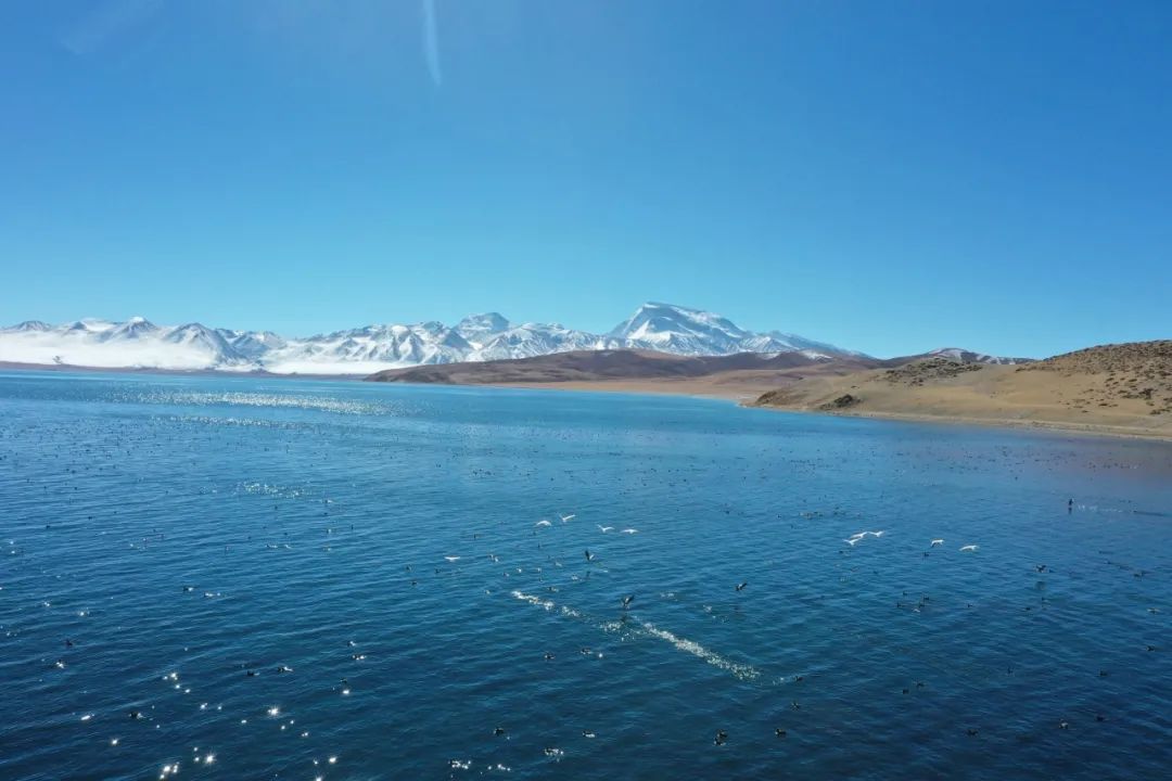 夏季的普莫雍錯,湖水清澈,冬天的普莫雍錯湖面會隨著溫度降低結冰,表層通透可見湖底,裂紋蔓延整個湖面,在陽光的照射下,呈現出極致的藍,美麗又浪漫,有著世界海拔最高、中國最大的藍冰湖美譽,也被稱為“中國的貝加爾湖”,它所擁有的是西藏也是中國最夢幻純凈的藍色。